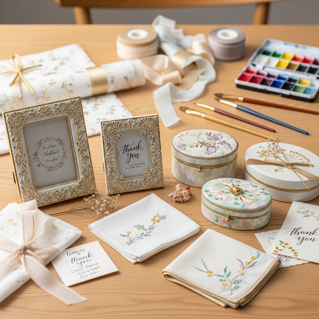 初心者でも挑戦しやすいハンドメイドギフトとしては、刺繍入りのハンカチやタオル、二人の思い出写真をアレンジしたフォトアルバム、手作りの石鹸やキャンドルなどがあります。特に、結婚式の日付や二人のイニシャルを入れることで、記念品としての価値も高まります。