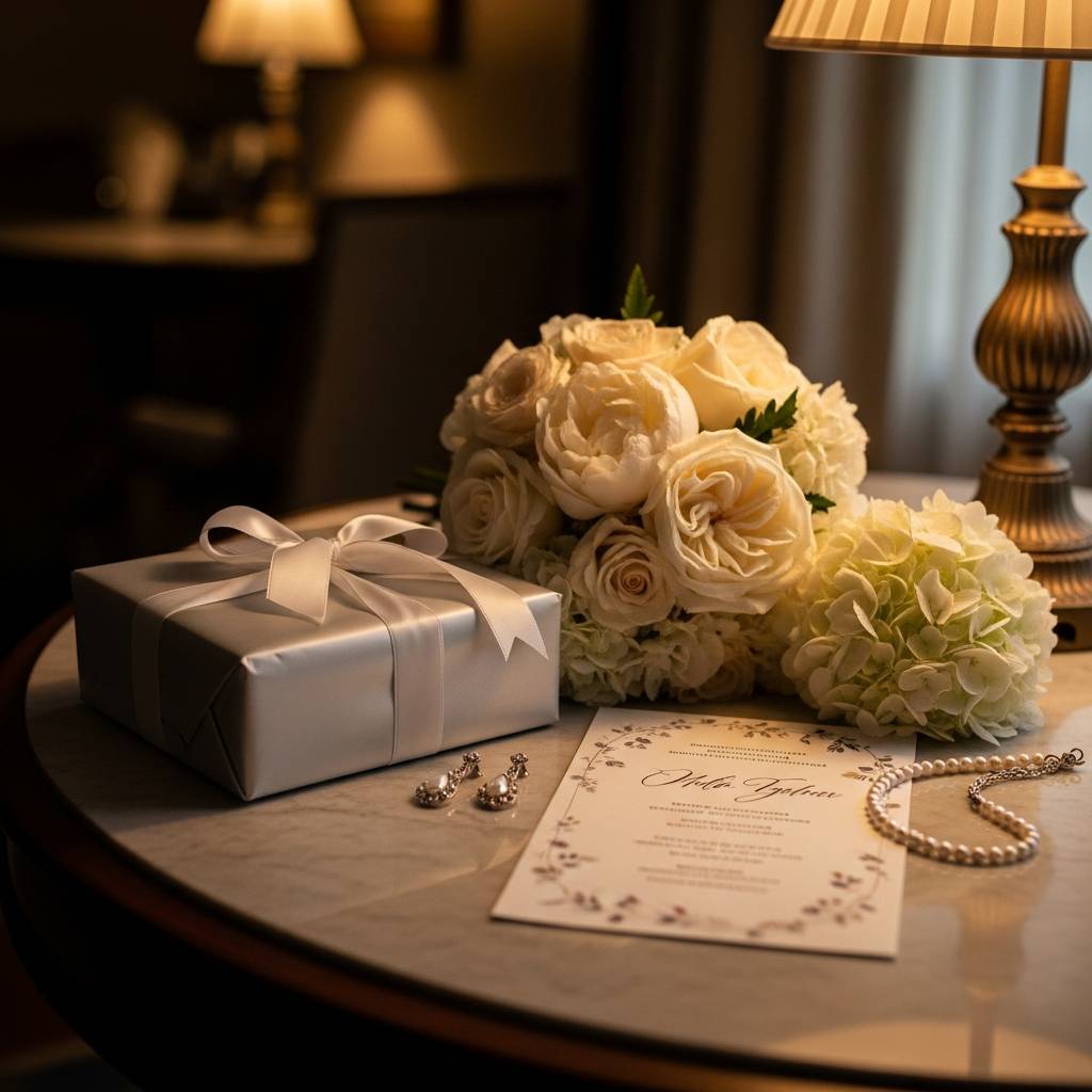 思い出に残るプレゼントとしては、花嫁の名前や結婚日が刻印された特別なジュエリーが感動を呼びます。ティファニーやミキモトといったブランドのアクセサリーは、特別な日の記念品として最適です。また、結婚後も長く使えるパールのネックレスやイヤリングも素敵な贈り物になります。