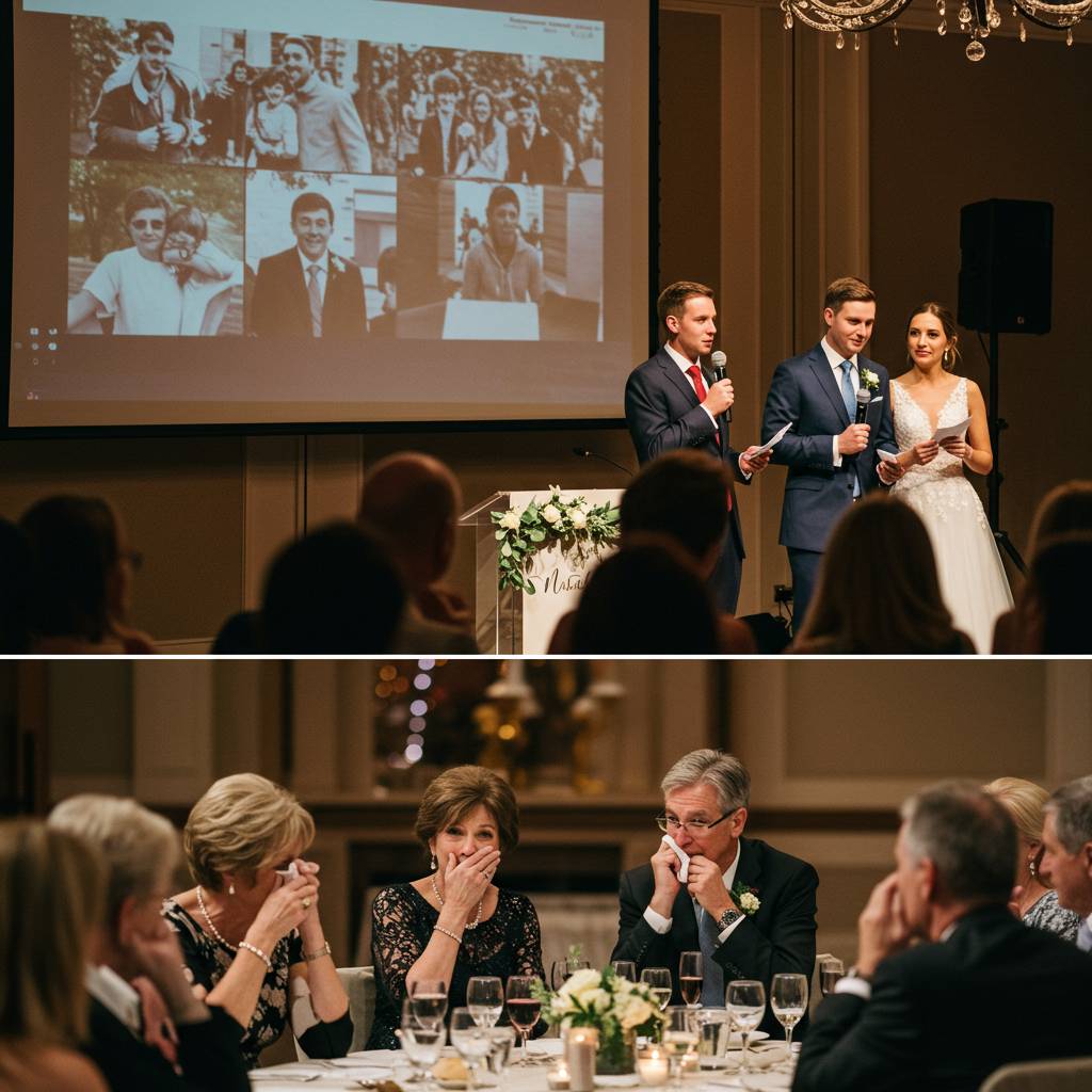 結婚式で両親に感謝の気持ちを伝えるサプライズは、会場全体が感動に包まれる特別な瞬間となります。実際に行われた感動的なサプライズ演出をいくつかご紹介します。