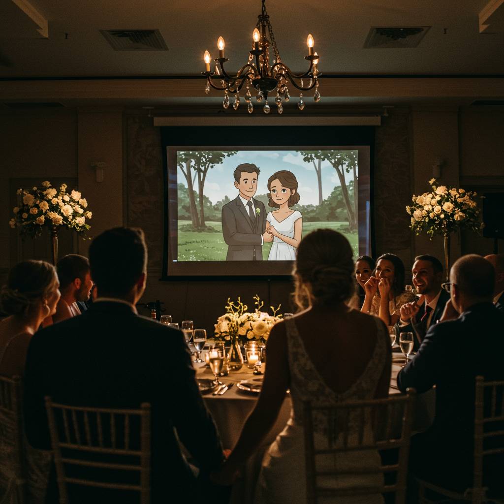 感動を呼ぶアイデアとしては、二人の子供時代の写真を並べて表示する「赤ちゃん写真の比較」や、共通の趣味や思い出の場所の写真を集めた「テーマ別コレクション」などがあります。また、友人からの寄せ書きメッセージをスキャンして映像に取り入れる方法も効果的です。